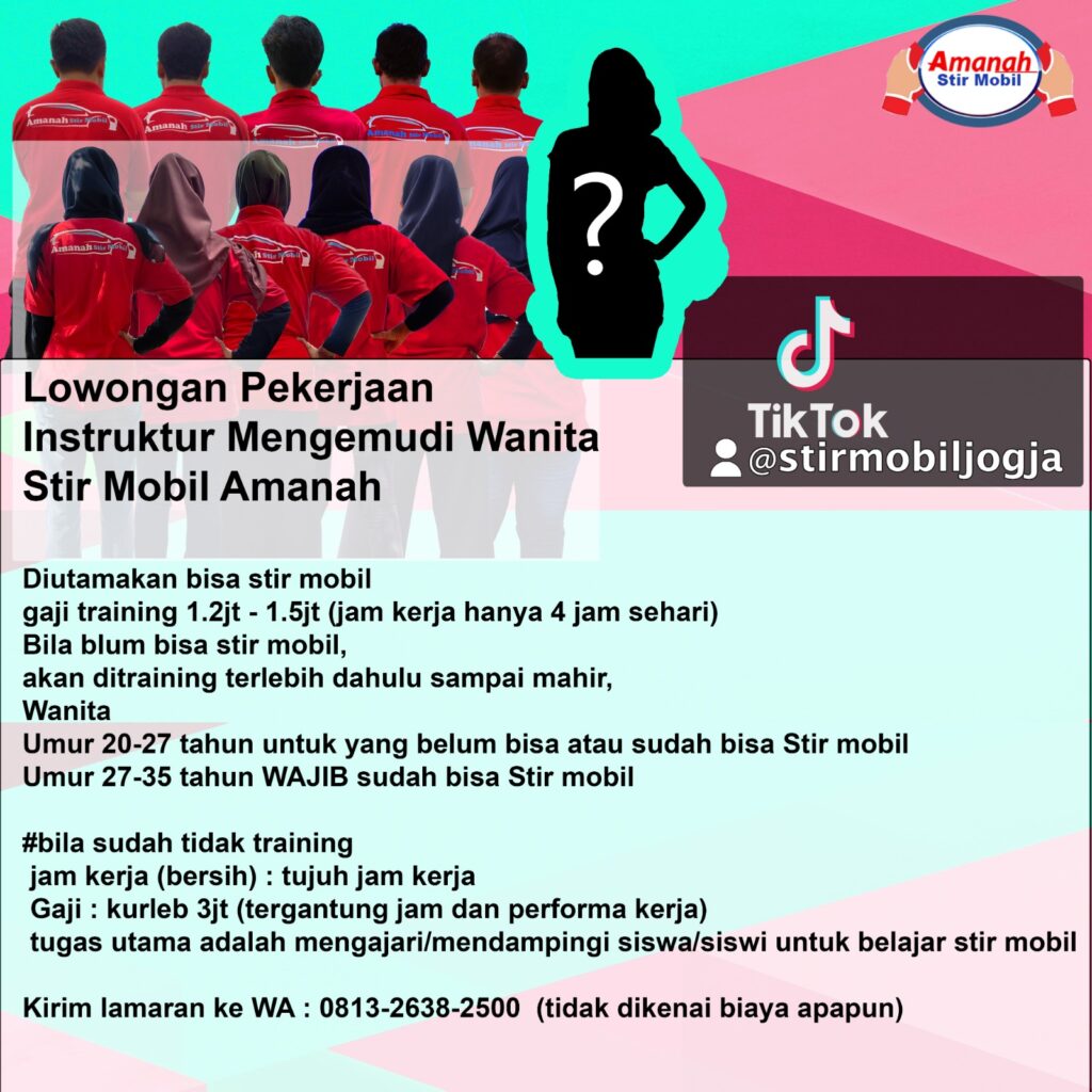 Sedang cari pekerjaan dengan aktivitas yang dinamis dan bermanfaat? Stir Mobil Amanah lagi membuka lowongan kerja untuk posisi Instruktur Mengemudi (Wanita), lho! Kalau kamu percaya diri, sabar, dan punya skill menyetir yang baik, ini bisa jadi kesempatan menarik buat kamu. Yuk, simak info lengkapnya di bawah dan segera kirimkan lamaran!